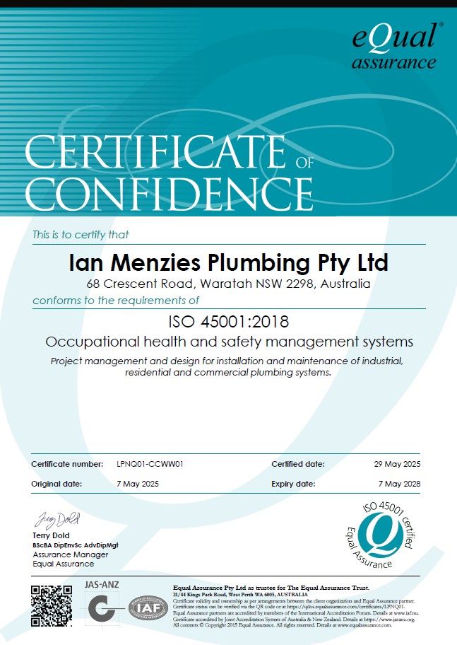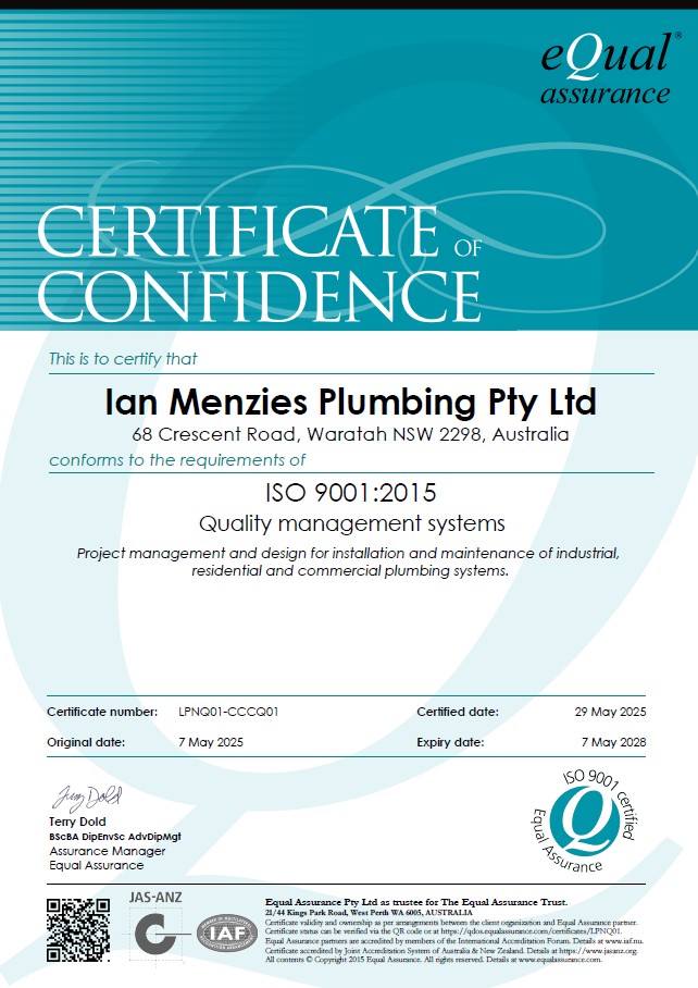 At Laser Plumbing Newcastle Central, we’re committed to excellence in every aspect of our work. Our dedication is reflected in our ISO certifications: